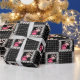 Black and White Square with Pink Cat Paws Wrapping Paper