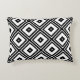 This decorative accent pillow features a contemporary retro abstract pattern of nested black and white diamond squares.