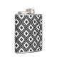 This hip flask features a contemporary retro abstract pattern of nested black and white squares.