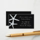Starfish on black wedding reception venue cards. Include small enclosures with wedding invitations to tell guests where to meet for the reception. White template text can be customised in two areas on elegant, black cards decorated with white sea stars. Basic white paper is shown and can be changed. Come in sets of 100.