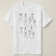 Twelve stick figures are all over the front of the white t-shirt in several facial expressions. Some are smiling, others are surprised, others are neutral.