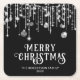 Black and white string lights sparkles Christmas party paper coasters with a cute whimsical fun party for a festive Holiday.