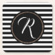 Stylish pulp board paper coasters done in a black and white horizontal stripe pattern. A black decorative circle, in the middle of the coaster, has a white single letter monogram. Personalise the letter to suit your needs. Great for anytime use and makes a nice gift idea.