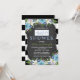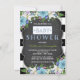 Pretty blue floral black and white stripe chalk baby shower invitation. You can easily customise this cute blue and black stripe chalkboard baby shower invitation by adding your event details in the font style and colour, wording, layout, etc., of your choice.