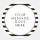 Black and White Stripe Gold Personalised Message Classic Round Sticker