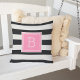 Black and White Stripe Pink Monogram Outdoor Cushion