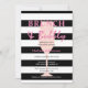 Black and White Stripe with Pink Glitter Champagne Invitation