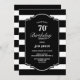 Black and white striped 70th birthday dinner invitation. Text is fully customisable to enable you to include all of your own information for your birthday celebration.