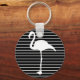 Black and White Striped Flamingo Key Ring