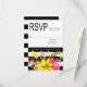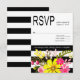 Black and White Striped Flowers RSVP yellow Card