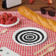Black and white striped concentric circle halloween paper plates for a stylish punk rock kid or adult halloween party.