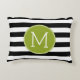 Black and White Striped Pattern Green Monogram Decorative Cushion