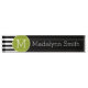 Black and White Striped Pattern Green Monogram Nameplate