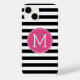 Black and White Striped Pattern Hot Pink Monogram Case-Mate iPhone Case