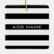 Black and White Striped Pattern with Name Ceramic Tree Decoration