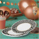 This paper plate features a black and white radial stripe around the edge with a white centre and a gold border. Perfect for New Years Eve or any other formal gathering.