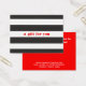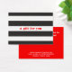 Black and white horizontal stripes background accented by bold red text. A simple and affordable Christmas giftcard for the holiday season. Great for fashion, beauty and retail professionals.