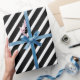 Diagonal black and white striped wrapping paper perfect for any occasion.