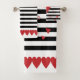Black-and-white stripes and red hearts bath towel set