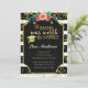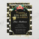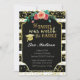Black and white stripes graduation invitation with a touch of gold confetti and flowers.