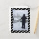 A classic design featuring a border of black and white diagonal stripes. Snowflakes in the top corner. Add your picture and customise as you like. Add a message on the back of the postcard if you like.