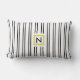 Vertical black and white stripes pattern, polyester lumbar pillow with monogram in golden frame. On the back side is striped pattern with colours inverted. More black and white products here: https://www.zazzle.com/collections/black_white-119794221925521334