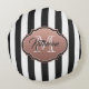 Black and White Stripes Monogram Round Cushion