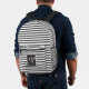 NewParkLane - Cute personalised backpack, with a modern, minialist black and white pattern. With a square frame for your name and monogram. Easy to customise in Zazzle with your own text for a personalised design. All text styles, colours, and sizes can be modified to fit your needs.