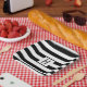 For a simple and stylish Halloween, accentuate with black and white stripes. Add your initial and also check out the rest of the collection for matching paper plates and paper cups.