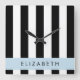 Black and White Stripes, Striped, Lines, Your Name Square Wall Clock