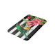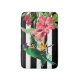 Elegant black and white geometric stripes with exotic pink flowers and parrot. Customisable bath mat template