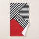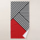 Simple abstract geometric design with black and white stripes and red triangle decoration