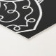 Destei's original decorative mandala design in black and white color scheme. The white mandala is placed three times on the design. In the middle the mandala is fitted while on the edges the mandala slightly larger and cropped giving the design balance. Personalizable name areas are placed around the central mandala, thoughtfully angled so the name can be read from both directions. The background color is black, but feel free to change it to your liking.