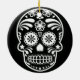 Black and White Sugar Skull Flower Ornament Round