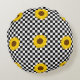 Black and White Sunflower Chequered Flower Pattern Round Cushion