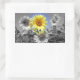 Black and White Sunflowers with One Yellow Rectangular Sticker