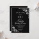A black and white Surprise 60th birthday dinner invitation featuring ornate lace diagonal corners to frame the white text.