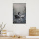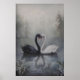 Black and White Swans in Misty Lake Dark Poster