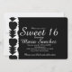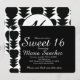 Black and White Sweet 16 Heart Birthday Party Invitation