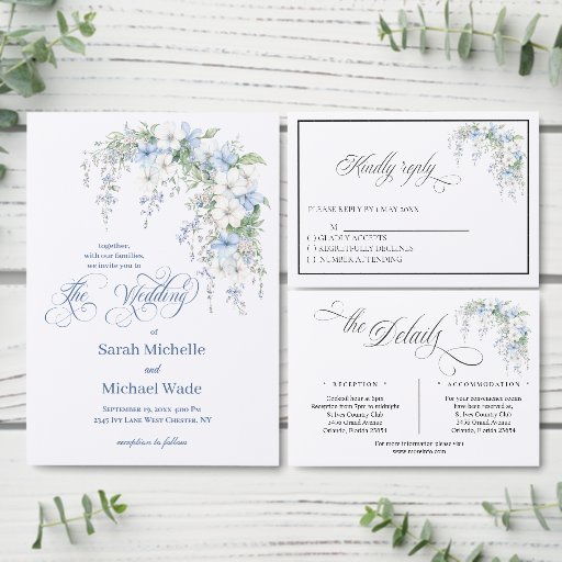 Blue Morning Glory Calligraphy Wedding SuiteDesigned by Phyllis Waugh