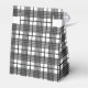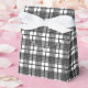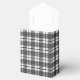 A product or favour box with an original black and white simple glen-inspired horizontal plaid pattern with thin stripes.