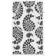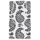 A black and white paisley pattern formed by dog paw prints in many sizes.