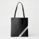Personalise this understated minimalist black and white tote bag with your name in a cute and casual script font in the corner on one diagonal stripe near the edge. Use the template editor to change the tote bag colour or font of your custom text. Add custom text for a special use shoulder shopping bag, or add the name of your sports team or pet in the corner.