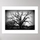 black and white tree in cemetery poster