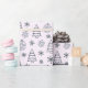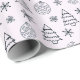 The monochromatic allure of black and white ornaments and snowflakes contrasts beautifully with the gentle pink canvas, adding a touch of refined glamour to your presents. Each ornament is intricately designed, showcasing a mix of playful patterns and intricate details. Snowflakes gently cascade across the paper, capturing the enchantment of a winter wonderland, while charming Christmas trees bring a touch of festive nostalgia.