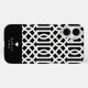 Stylish custom phone case in black and white colours. This design features a preppy Moroccan trellis pattern. Personalise it with your name monogram or other custom text with a cute heart symbol. Use the design tools to choose any background colours, edit the text fonts and colours and upload your own photos to create a unique one of a kind device cover!
