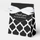 Thank you customers with a special gift or treat with this simple elegant chic Moroccan trellis style black and white design. Ideal for corporate gifts for clients or employees. Customise with your own name or company name and thanks. Could also be used for wedding favours or birthday celebrations filled with sweets or gifts. Designed by Sarah Trett.