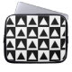 A stylish laptop sleeve with a geometric pattern of black and white monochrome triangles. This design is inspired by modern geometrical art or op art.