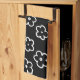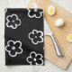 Stylish black and white flower pattern kitchen towel featuring chic tropical blooms, whimsical botanical motifs, and retro spring summer charm for a nature-inspired accent.