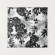 Tropical paradise captured in monochrome silhouette style, showcasing palms and monstera leaves.